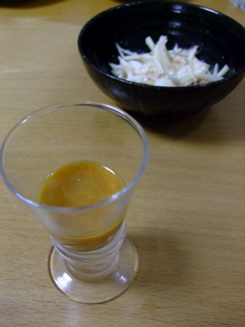 手前はこのわた。奥はたまねぎのマヨネーズ和えです。これもかつお節も一緒に和えました。