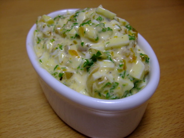 タルタルソースはゆで卵、ペコロスのオイル漬け、パセリ、ケイパー、マヨネーズ、塩こしょうで味をととのえました。ピクルスがなかったのでワインビネガーも加えたような気がします。