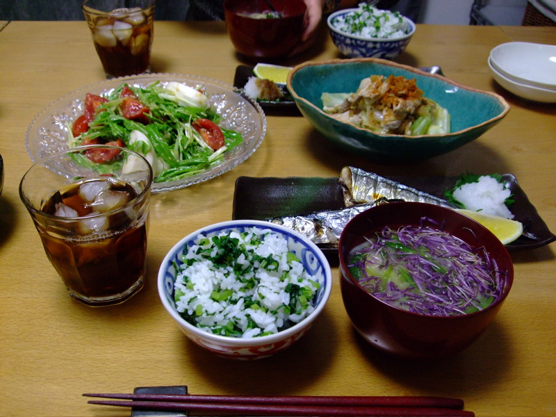 この日の食卓は菜飯、かきのもとのお味噌汁、かぶのフレッシュサラダと純和食で。