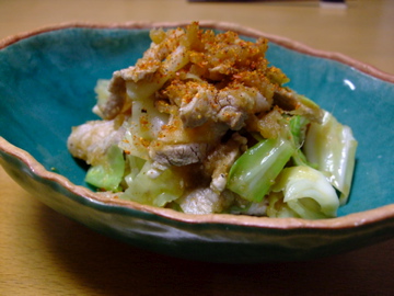 豚バラ肉のかたまりを薄切りにしてキャベツと一緒に茹で、大根おろしであえるのですが、味付けがちょっとぼやけてたかな…。普通でした。