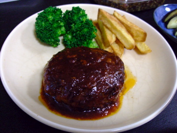 形も色も大きさもパーフェクトな正統派のハンバーグ♪