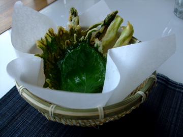 そこで定番の天ぷらを少しだけ。アスパラと大葉です。