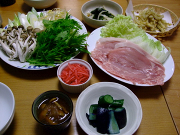 水菜、ぶなしめじ、ねぎ、子大豆もやし、シルク豚、白菜、明太子、すべてOisixのものです。忘れてならないのが紅生姜ですね。