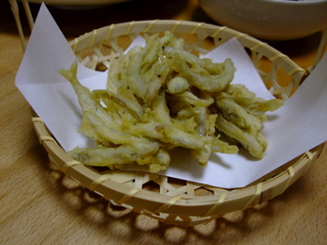 小さな小さなわかさぎを数匹ずつまとめて天ぷらにしました。