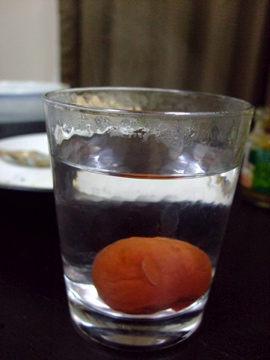 尿酸値の高い彼が最近好んで飲んでいる梅干し入りの焼酎お湯割です。