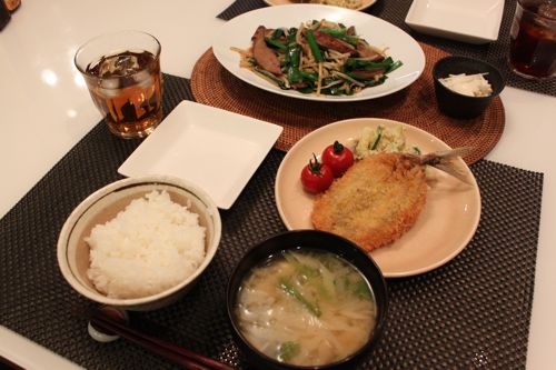 定食屋さんの定番メニューが食べたくなって、アジフライとレバニラ炒めを作りました。