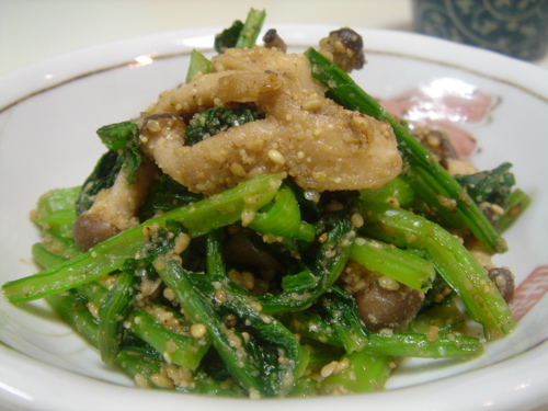 ほうれん草と違って少し歯ごたえがある小松菜はごま和えもおいしい。
