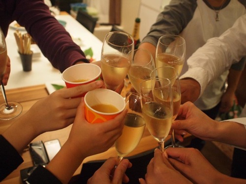 最初は大人7人、子供2人でスタート。モエでかんぱーい♪ あ、子供はジュースでね。