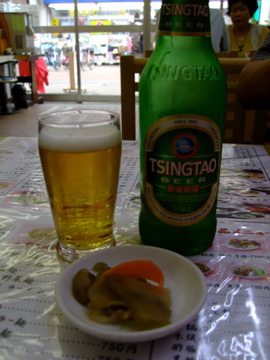 仕事が半ドンだったので迷わず青島ビールをオーダー。