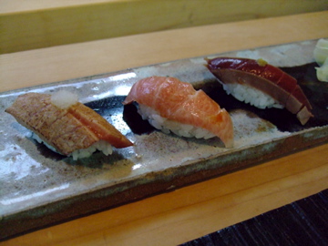 左がタレ、右が塩です。塩はタレに比べて香ばしさが強く、大人のお寿司という印象でした。白焼きみたいなものですものね。