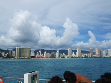 海から見るワイキキ。