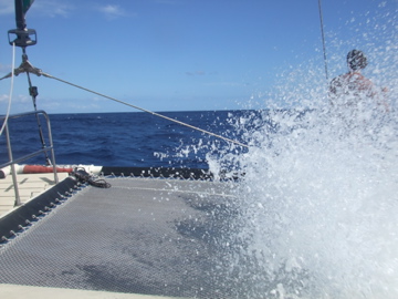 しばらくするとバシャーっと波を受けました。