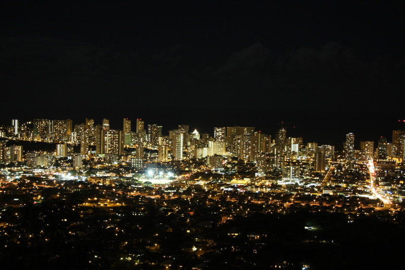 すぐ下は住宅街なのですが、この辺りに住んでいる人はこのワイキキの夜景を毎日見ることができるんですよね。なんともうらやましい限りです。