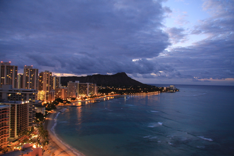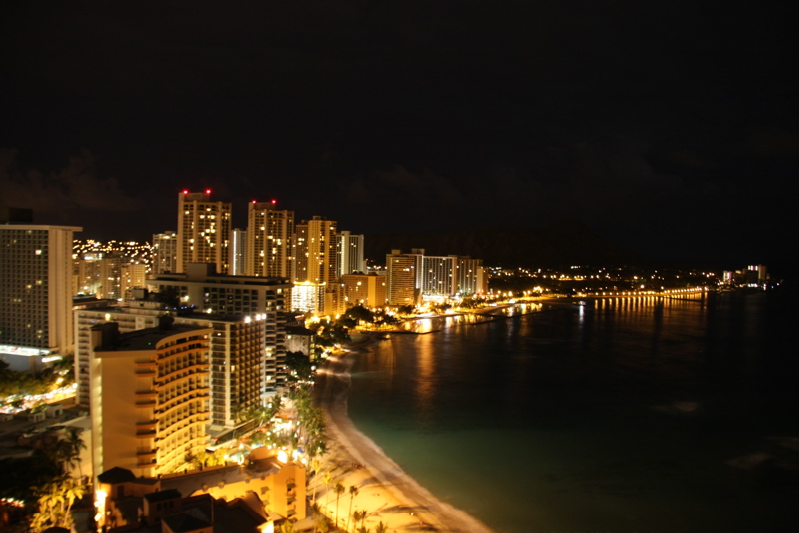 ハワイには電飾がなので、ライトの色が統一されていてオレンジ色のキレイな夜景になるんですね。ずーっと見ていても全く飽きません。