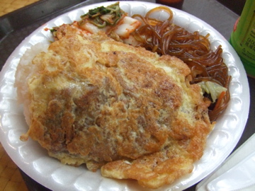トマト、たまねぎ、ハム、チーズなどがたっぷり入ったオムレツ。卵は3個半使っていると書かれていましたが、野菜たっぷりで重くありませんでした。サイドディッシュは数種類から選択制でフライドライス(チャーハンですね)をセレクト。