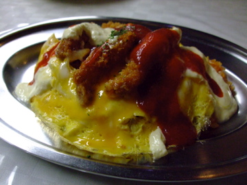オムライスに海老フライとタルタルソースが乗っているものを想像してみるといいと思います。