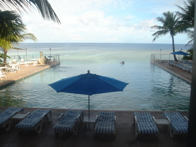 海とつながっているように見えるプールなんです。どこまでがプールでどこからが海でしょうか。わかりますか?