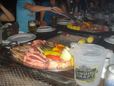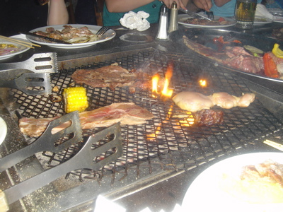 ところがどっこい、涼しいレストランを抜けるとそこには蒸し風呂状態のバーベキュー会場が!