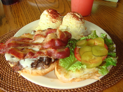 ベーコンとローストビーフのバーガーです。サイドメニューはポテトサラダ。