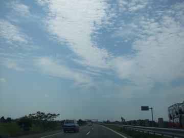 高速道路をひた走ります。青い空がキレイ。夏の空ですね〜。