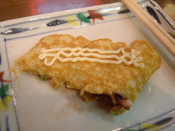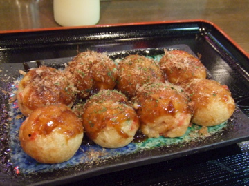 出発は夜だったので、何か食べようということになり、たこ焼き屋さんに入りました。