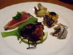 右上はたらきくの天ぷら。たらきくというのは鱈の白子のことのようです。