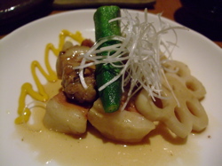 左からきびなご、たかえび、かんぱち、水いか、くびおれ鯖、ながらめ、かつお、秋太郎(まぐろ)。特に鹿児島らしいのは、きびなご、くびおれ鯖でしょうか。九州では〆ていない生の鯖をいただくことができますが、ここ鹿児島でもくびおれ鯖という生のさばをいただくことができました。鯖って身がしっかりしている印象が強いのですが、くびおれ鯖はとってもやわらかく一口いただいて驚きました。食文化の違い、九州に来ると実感しますね〜。甘いお醤油はやっぱりちょっと違和感ありましたが、焼酎にはあうんだなという印象は持ちました。