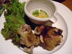 驚いたのが食感です。まるでお肉!とても魚介類とは思えません。そして臭みは一切なし!塩ごま油をつけていただくというスタイルがレバ刺しのようですが、生のお肉を食べているような感じでした。