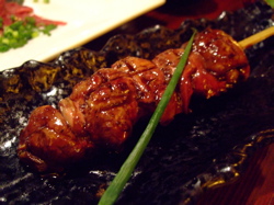 左下は白レバー串焼き。そして右下は仙台名物牛タンの炭火焼です。