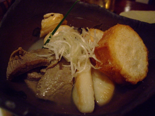 仙台おでんというものが果たしてあるのかはわかりませんが、仙台の名物である牛タン、笹かまぼこ、牡蠣、仙台麩、そして大根が入っていました。おそらくこのお店のオリジナルおでんだと思います。おだしのしっかりきいたあっさりとしたおでんでしたが、どの具材もおでんとして違和感なくいただけました。