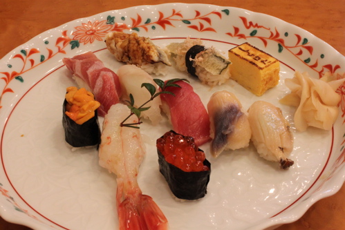 仙台から松島へは国道45号線をまっすぐ走るだけで行けますが、松島のすぐ手前にある塩竈は三陸のおいしいお魚が集まる港町です。お鮨が有名だそうで、ガイドブックにも美味しそうなお鮨の写真がたくさん掲載されていました。そこで、松島観光の前に塩竈で美味しいお鮨をいただくことにしました。
