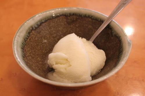 最後に洋梨のシャーベットがつきました。美味しかったです。