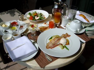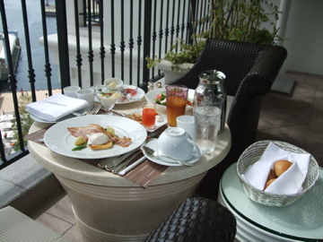 私は朝食なしのプランで宿泊しましたが、朝食付きのプランで宿泊するとたった+231円でルームサービスに変更することができるんだそうです。優雅な朝食…のはずでしたが、気温が高過ぎてちょっと優雅とはいえなかったかな(笑)。でも贅沢な時間は過ごせましたよ。