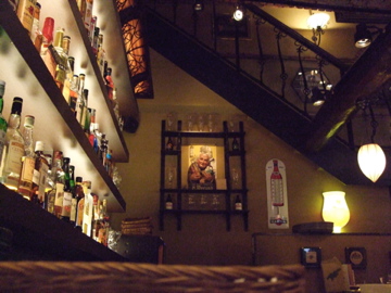 カウンターと小さなテーブルと椅子というバースタイルのお店。
