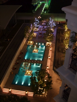 ホテルのテラスも夜はライトアップされてとってもキレイでした。