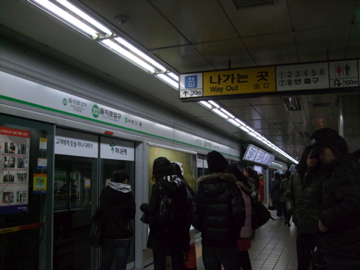 繁華街から地下鉄に乗り込み、新村(シンチョン)という学生街に向かいました。