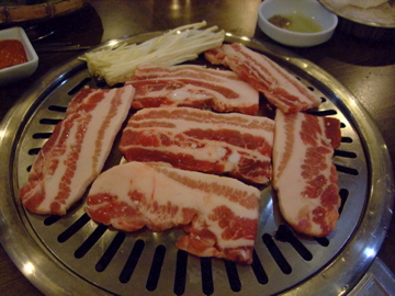 そこで韓国初日の晩ごはんは豚三枚肉の焼肉「サムギョプサル」にしました。