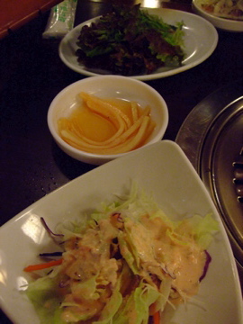 その他キムチや野菜、薬味やたれなどが並び、テーブルはいっぱいになってしまいました。