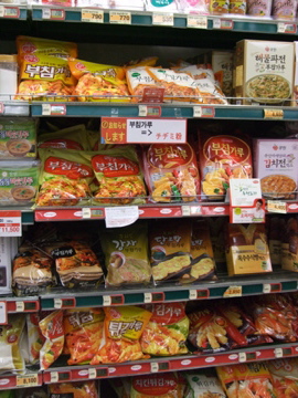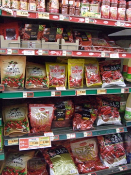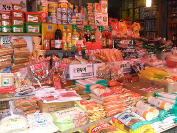 韓国食材のお店。こういうの、ひとつひとつゆっくり見たいですよね。