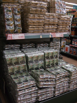 奥に並んでいるのが高麗人参、手前には韓国海苔が20袋くらいずつパッキングされたものです。