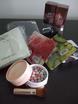 おみやげ用のBBクリームの他、10枚20000ウォン(1500円)のシートパック、フルーツエキス配合(?)のヨーグルトパック、フェイスパウダー。